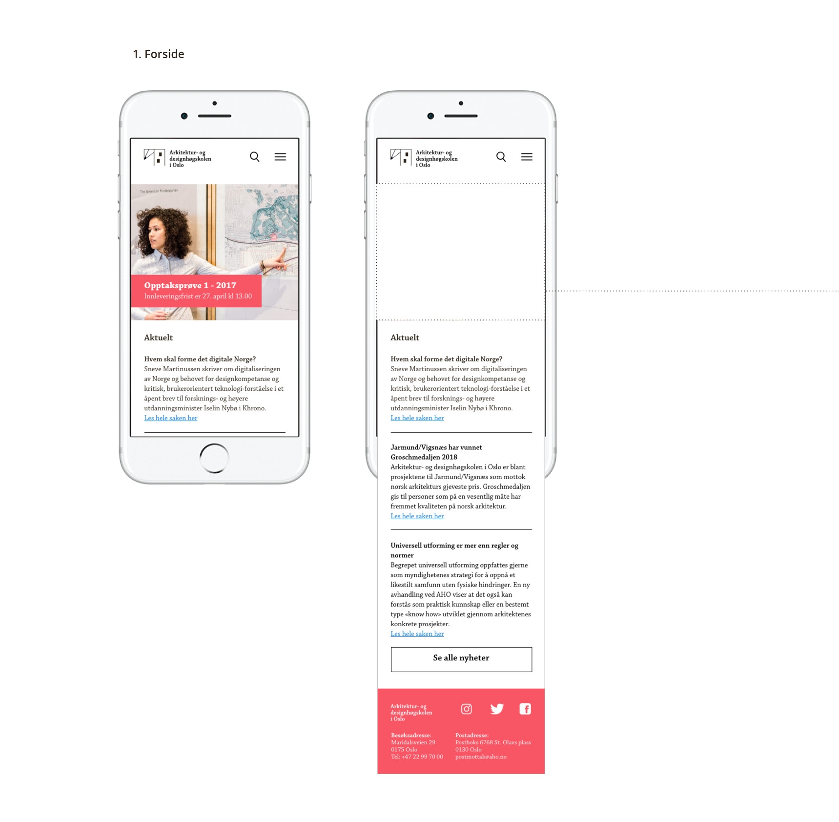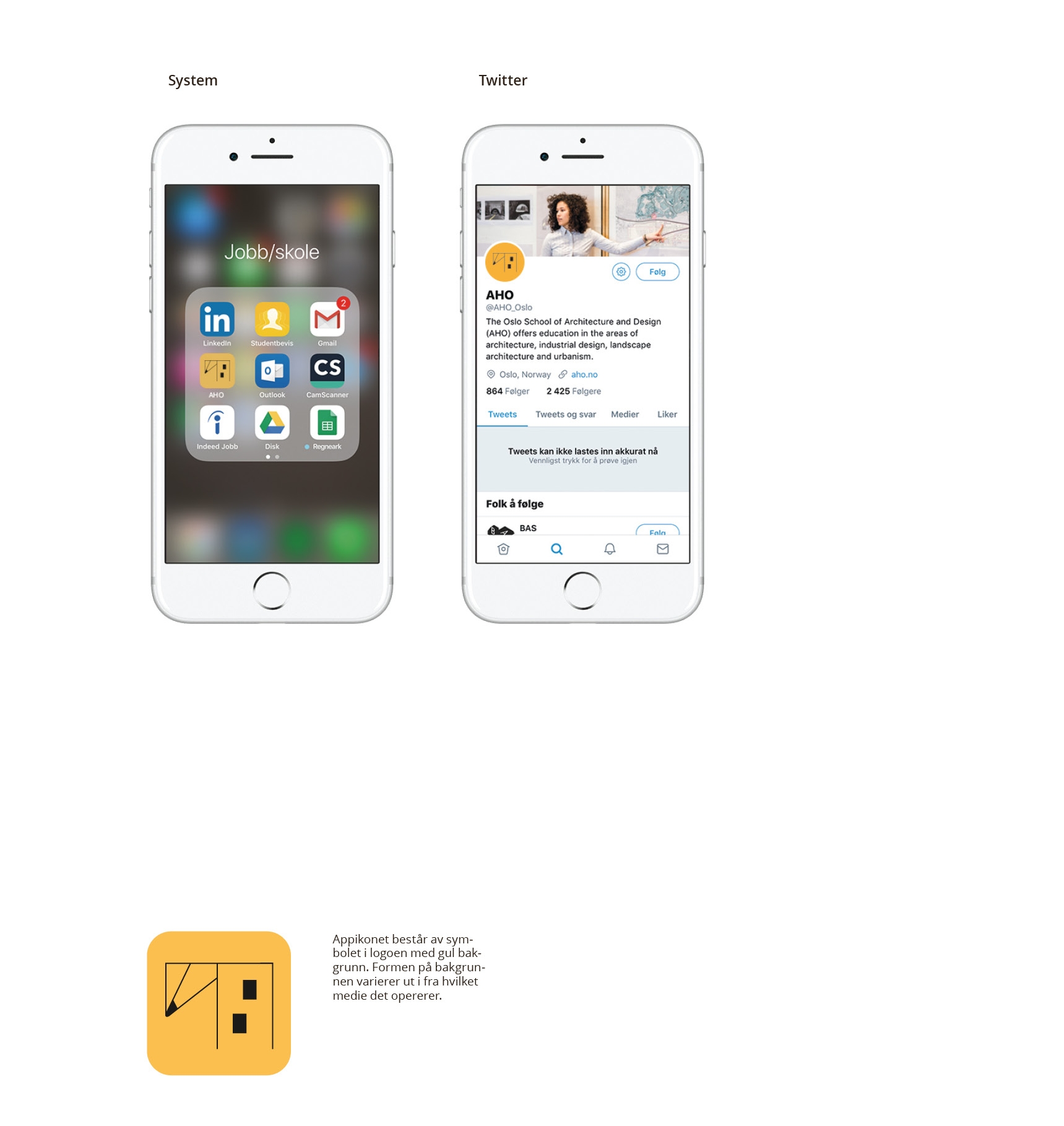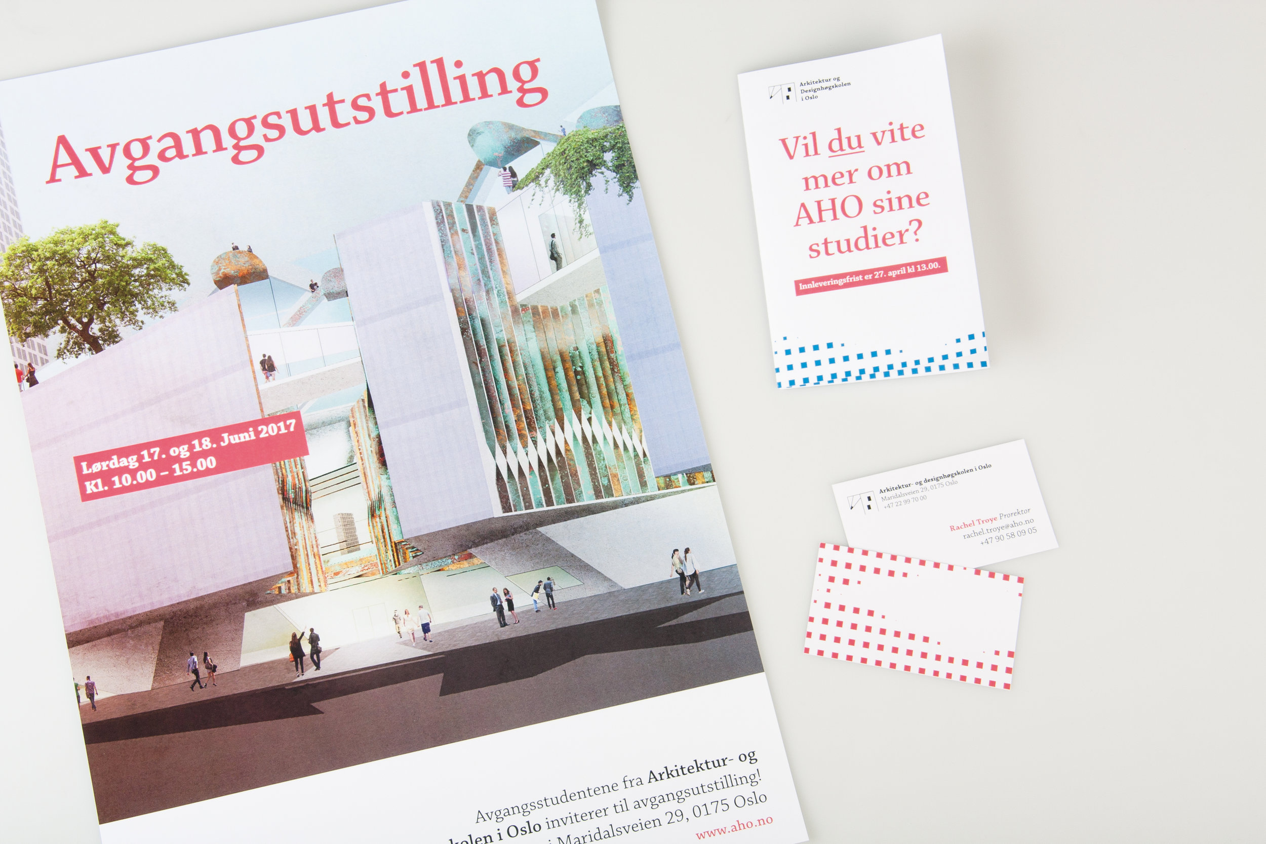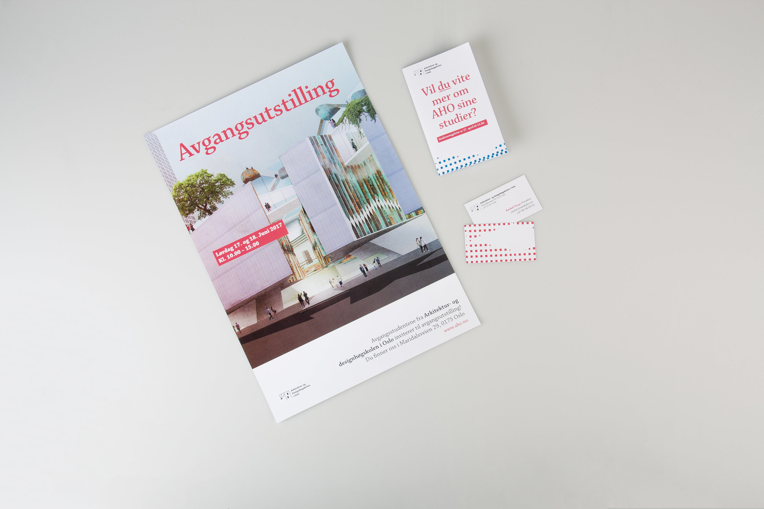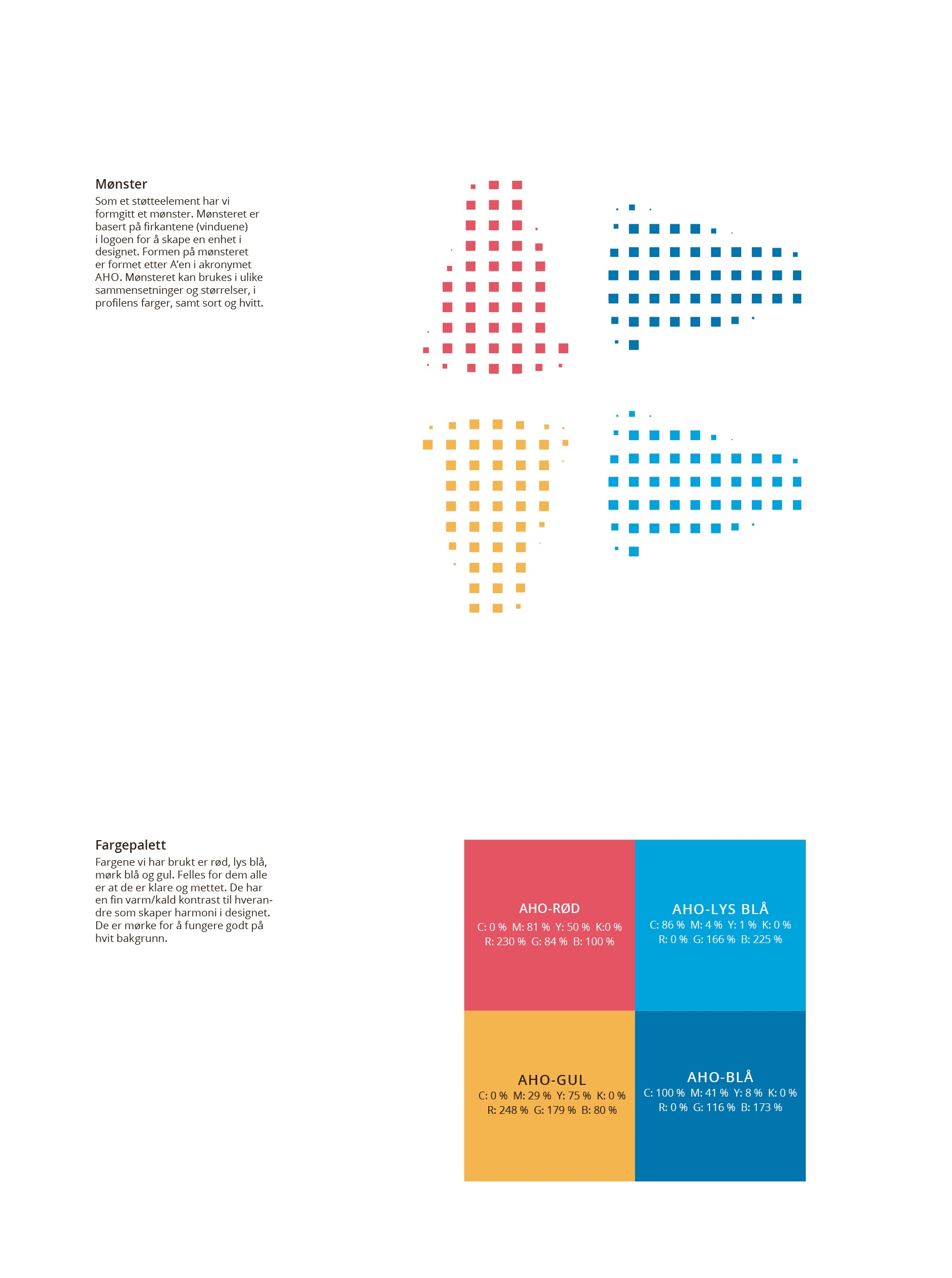 Utviklet en visuell identiet i tråd med strategisk platform for Arkitektur- og designhøgskolen i Oslo (AHO).